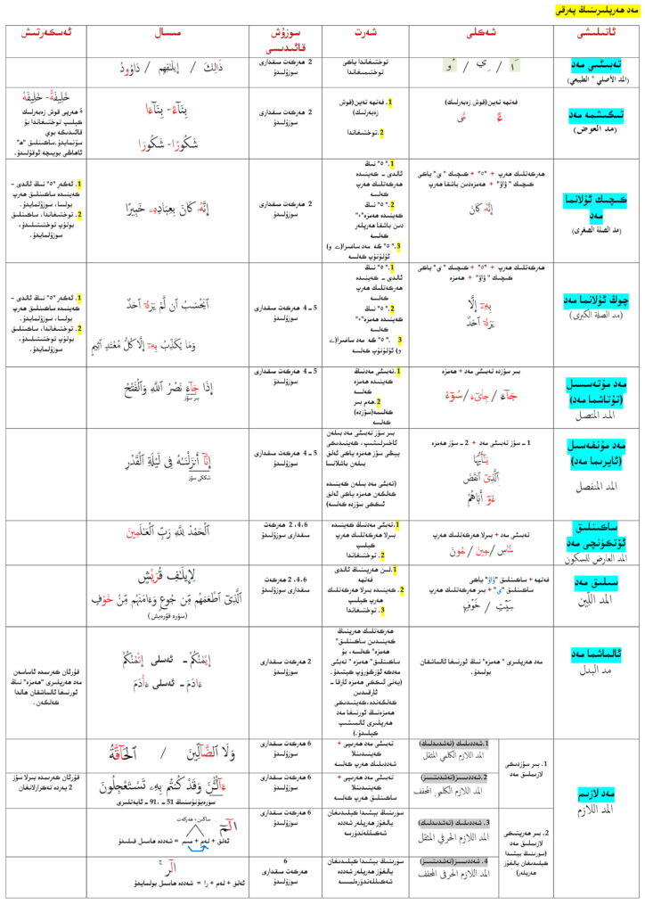 تەجۋىد دەرسىدىكى مەدلەردىن خۇلاسە