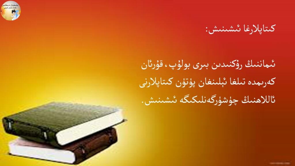 بەشىنجى دەرس: ئاللاھنىڭ كىتاپلىرىغا ئىشىنىش (ئون ياشتىن چوڭلار ئۈچۈن) دەرس مەزمۇنى By bilimhumar04/09/2024بالىلار ئىمان دەرسى 10 ياشتىن چوڭلار ئۈچۈن
